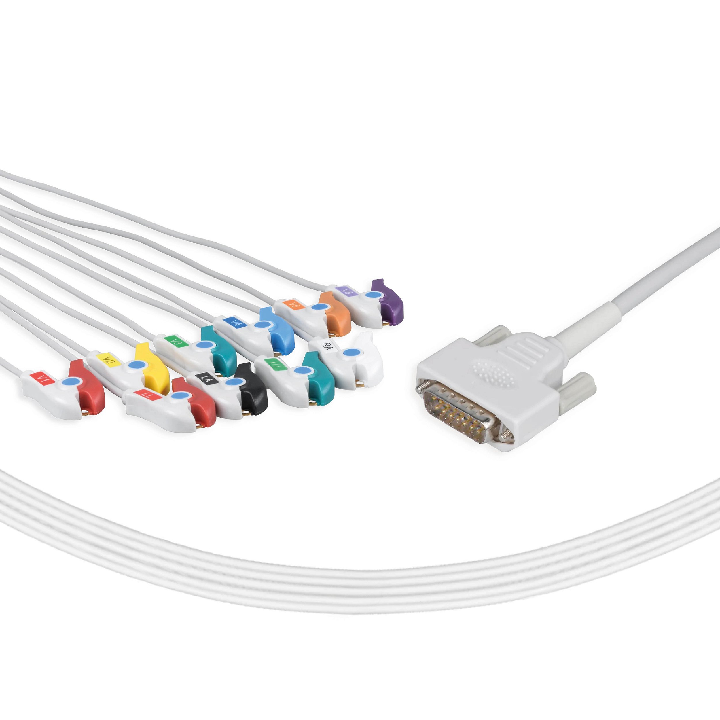 Cabo de Eletrocardiógrafo Cabo/eletrodo para eletrocardiógrafo. Cabo de ECG com 10 vias, tendo como função monitorar as curvas de ECG e mensurar a frequência cardíaca dos pacientes. Cabo comumente utilizados em unidades ambulatoriais, devido ao nível de detalhamento e informações para o diagnóstico clínico. Conexão no paciente por terminais do tipo garra, com padrão de cores AHA, rabicho com 2 metros de comprimento e cabo com comprimento total de 3,3 metros. Revestimento/fabricado em Poliuretano Termoplástico (TPU). Registro ANVISA: 82205419006