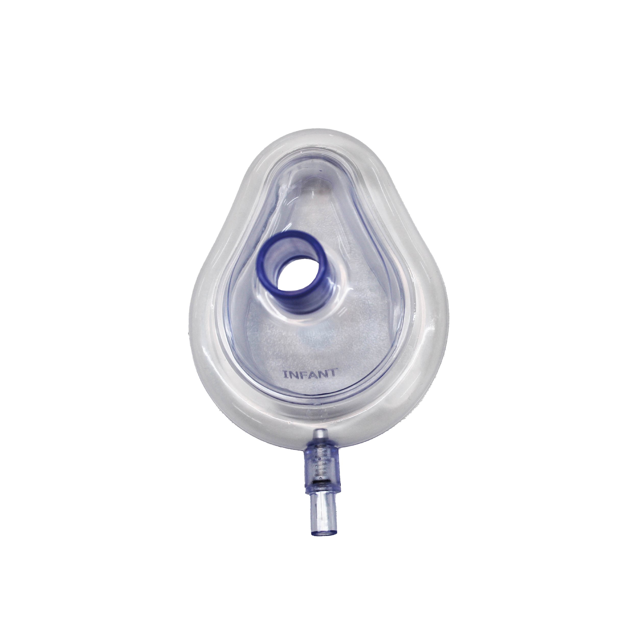 Máscara de coxim inflável Máscara de coxim inflável tamanhos 0, 1, 2, 3, 4 e 5, para pacientes adultos/pediátricos/neonatais. Máscara fabricada em policarbonato, com coxim em PVC e conector/gancho em polipropileno. Produto de uso único, livre de látex, com válvula horizontal. Utilizado em anestesia, reanimação e oxigenoterapia, com o objetivo de transportar gás medicinal ou mistura gasosa para o paciente. Registro ANVISA: 82205410003