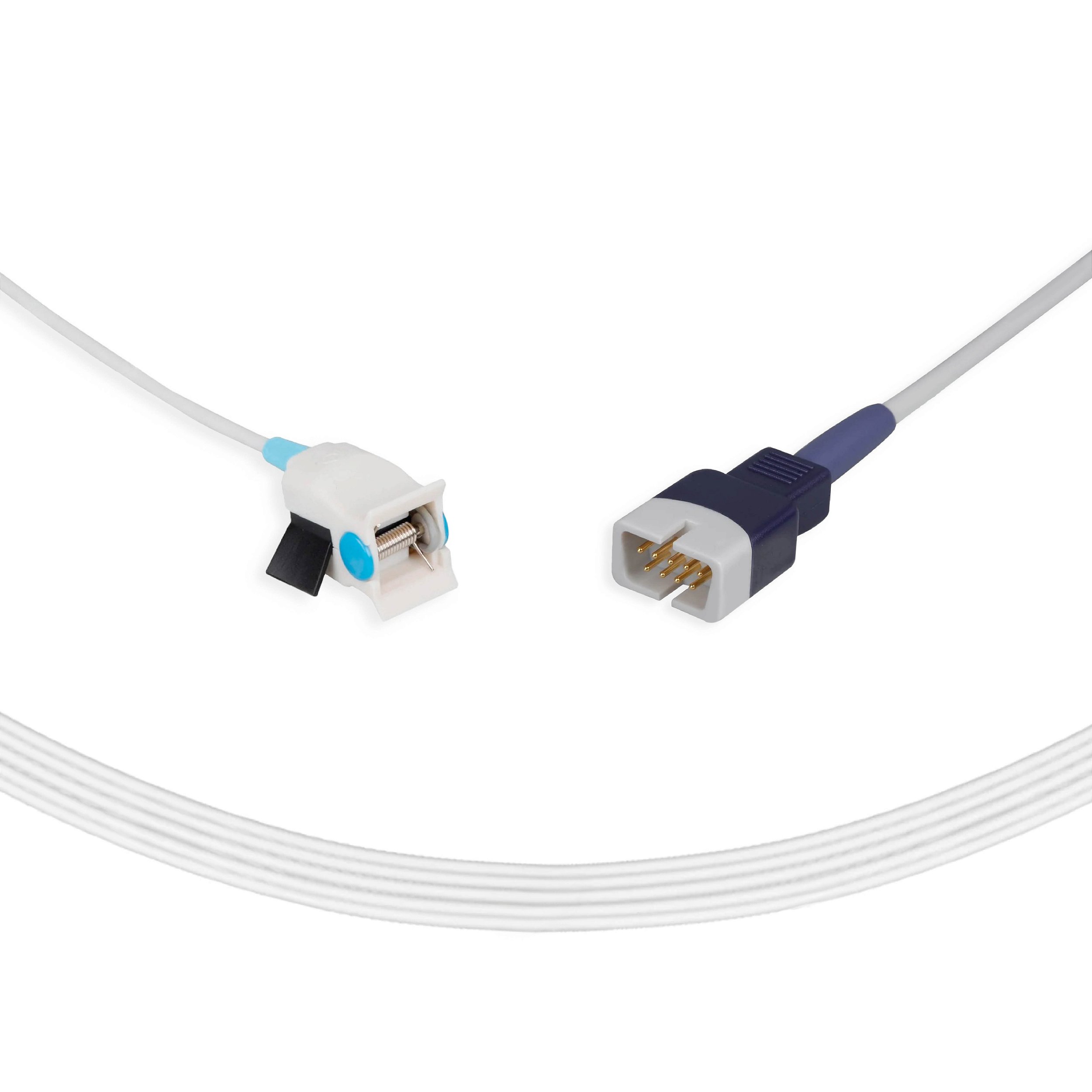 Sensor para monitoração de oximetria compatível com pacientes adultos, infantis ou neonatais. Sensores reutilizáveis destinados para uso em equipamentos, tipo monitores multiparamétricos, para uso individual, aplicáveis nos dedos das mãos ou dos pés, indicados para a monitorização contínua não invasiva da saturação de oxigênio arterial (SpO2), Frequência de pulso e índice de perfuração em condições com movimento ou sem movimento e boa ou baixa perfusão, com exatidão para um intervalo de 70 a 100% de SpO2, de +/-3% e exatidão da frequência do pulso, para um intervalo de 25 a 240bpm de +/-5%. Comprimento total de 3 metros. Revestimento/fabricado em Poliuretano Termoplástico (TPU). Registro ANVISA: 81464750062