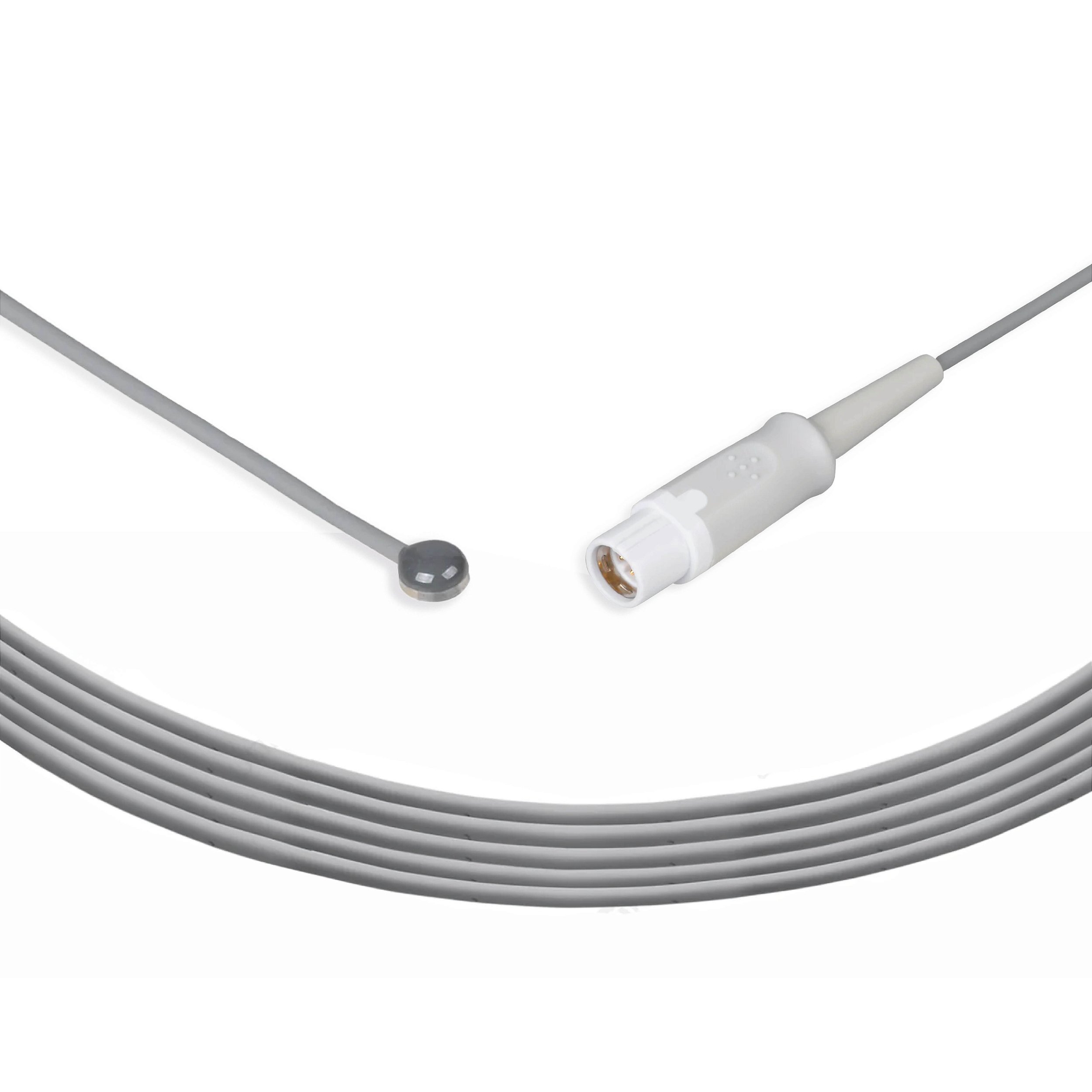 Sensor de Temperatura Sensor para monitoração de temperatura pele ou esofágica de pacientes adultos ou infantis. Sensores reutilizáveis destinados para uso monitores multiparamétricos, tendo como função monitorar o valor de temperatura dos pacientes. Cabo comumente utilizados em unidades de terapia intensiva (UTI), unidades ambulatoriais, centros cirúrgicos (CC), pronto-atendimentos, entre outros setores hospitalares. Cabo com comprimento total de 3 metros. Revestimento/fabricado em Poliuretano Termoplástico (TPU). Registro ANVISA: 82205419002