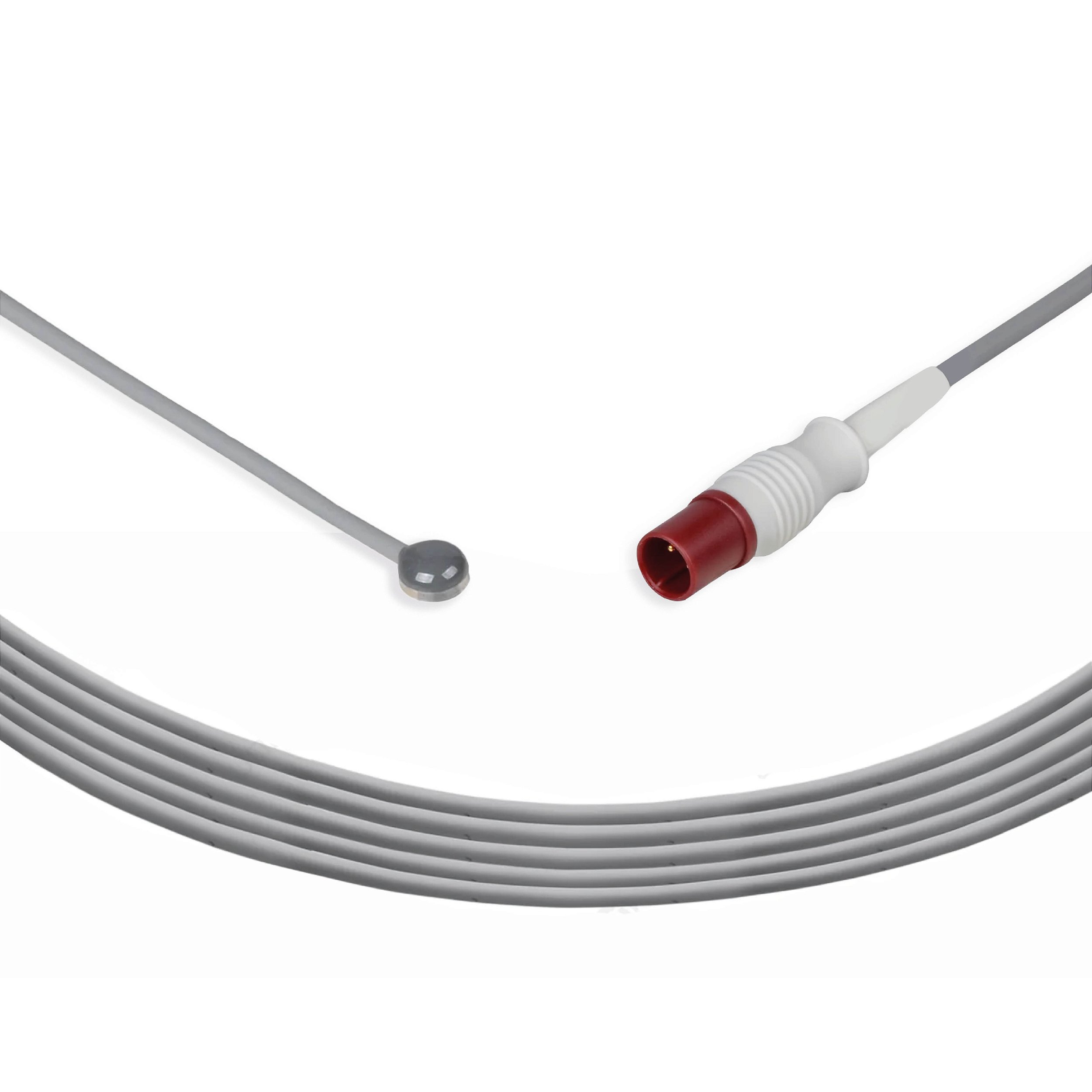 Sensor de Temperatura Sensor para monitoração de temperatura pele ou esofágica de pacientes adultos ou infantis. Sensores reutilizáveis destinados para uso monitores multiparamétricos, tendo como função monitorar o valor de temperatura dos pacientes. Cabo comumente utilizados em unidades de terapia intensiva (UTI), unidades ambulatoriais, centros cirúrgicos (CC), pronto-atendimentos, entre outros setores hospitalares. Cabo com comprimento total de 3 metros. Revestimento/fabricado em Poliuretano Termoplástico (TPU). Registro ANVISA: 82205419002